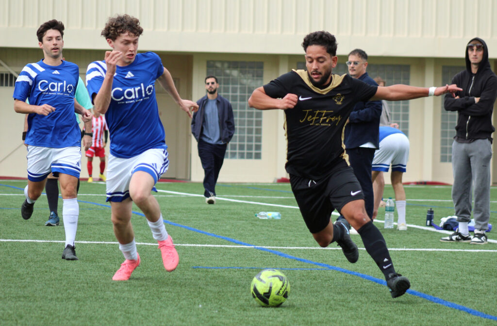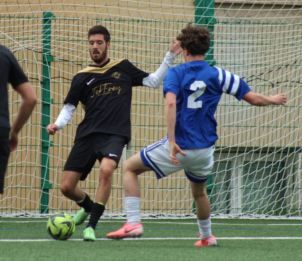 Devant les Ets Riberi, c’est l’I.U.M. (International University Monaco) qui a le mieux entamé la partie en scorant dès la 3ème minute par Christian FILONI. Mais le capitaine des Ets Riberi, Kevin DEMELAS, réagissait rapidement d’un tir lointain flottant, imité par son partenaire Charles DE ALMEIDA qui prenait l’avantage 2-1 à la 9ème minute. L’I.U.M. bénéficiait alors de plusieurs occasions nettes avec des tirs puissants, mais le gardien Yohann CABANIE effectuait une belle sortie et plusieurs parades, notamment sur un tir de Clément PEREZ ALONSO. Mais après cette situation dangereuse devant les buts des Ets Riberi, une contre-attaque partait sur l’aile gauche avec un centre pour Thomas ARTIERI qui contrôlait et plaçait la balle dans le petit filet opposé à ras de terre. De l’autre côté, Carlo ALBERTO TORRERO effectuait une belle course croisée dans le dos des défenseurs et, bien servi par Austin OGUNYINKA, mettait la balle au fond des filets (20ème minute, 3-2). Et lorsque le tir de Charles DE ALMEIDA était repoussé dans les pieds de Thomas ARTIERI, celui-ci se jetait pour ajouter un but supplémentaire. Peu après, le même ARTIERI se jetait à nouveau mais son tir était renvoyé par le poteau, puis c’est le gardien Andrea CIANALINO qui intervenait à nouveau. Le match était engagé mais correct et le niveau technique élevé des deux côtés, avec de nombreuses occasions de but ; la mi-temps était sifflée sur le score de 4-2 en faveur des Ets Riberi.